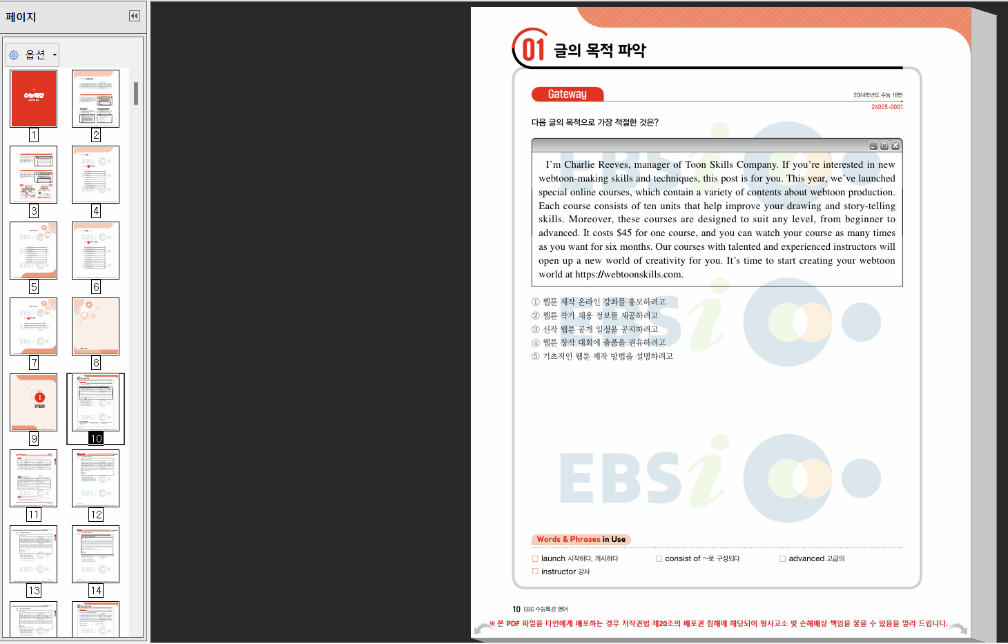 - 모바일 웹, EBSi 고교 강의 앱에서는 '웹뷰어'로 제공됩니다.