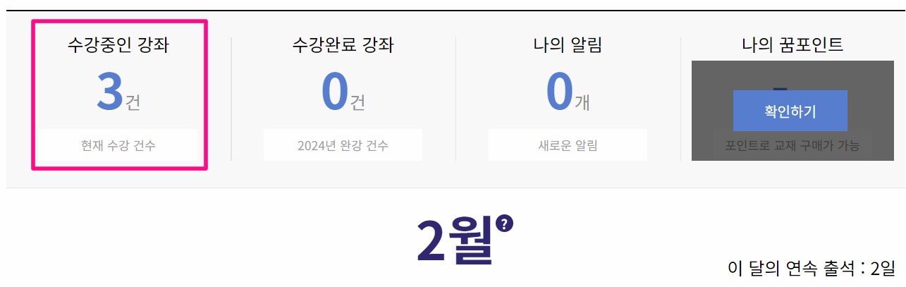 2- 3. 하단의 나의 학습방 클릭 -> 수강중인 강의 목록 확인