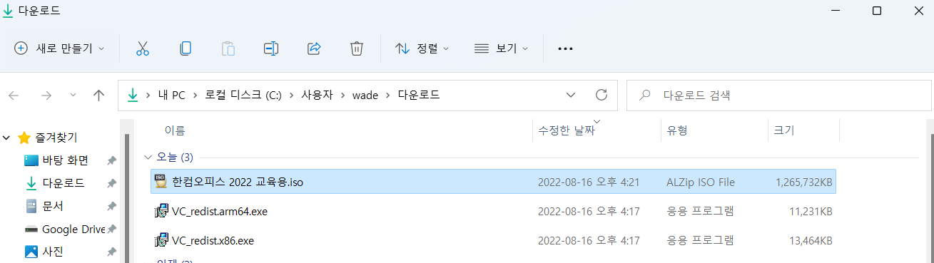 다운로드를 완료하면 다운로드 폴더에 아래와 같은 ISO 파일이 다운됩니다.