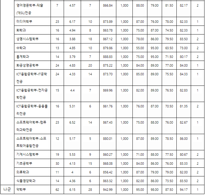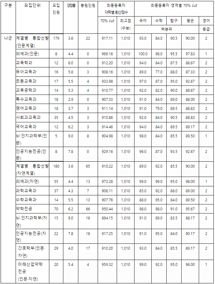 나군 대학 정시 배치점수가 궁금하다면?
