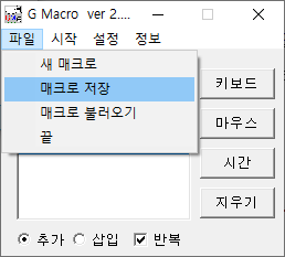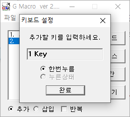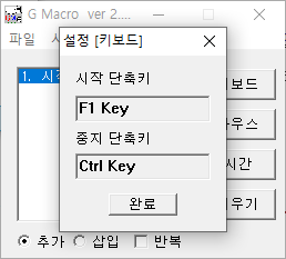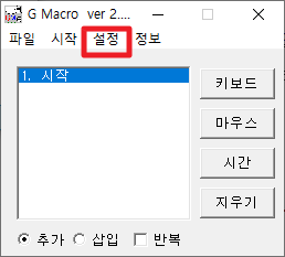g매크로 2.0의 실행상태에서 설정을 클릭해 매크로 동작을 지정해 보도록 하겠습니다.