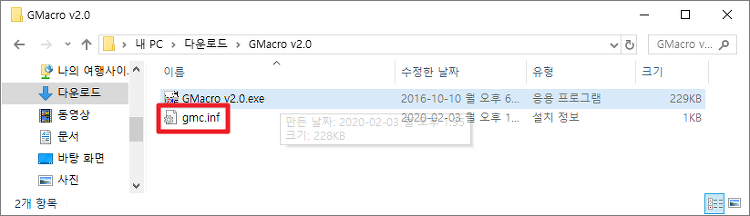 확인을 누르니 gmc.inf 파일이 생성되었습니다.