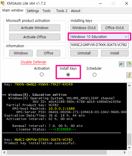 Install Keys "제품키"를 알고 싶다면 체크하고 Install 0wn key를 선택합니다.