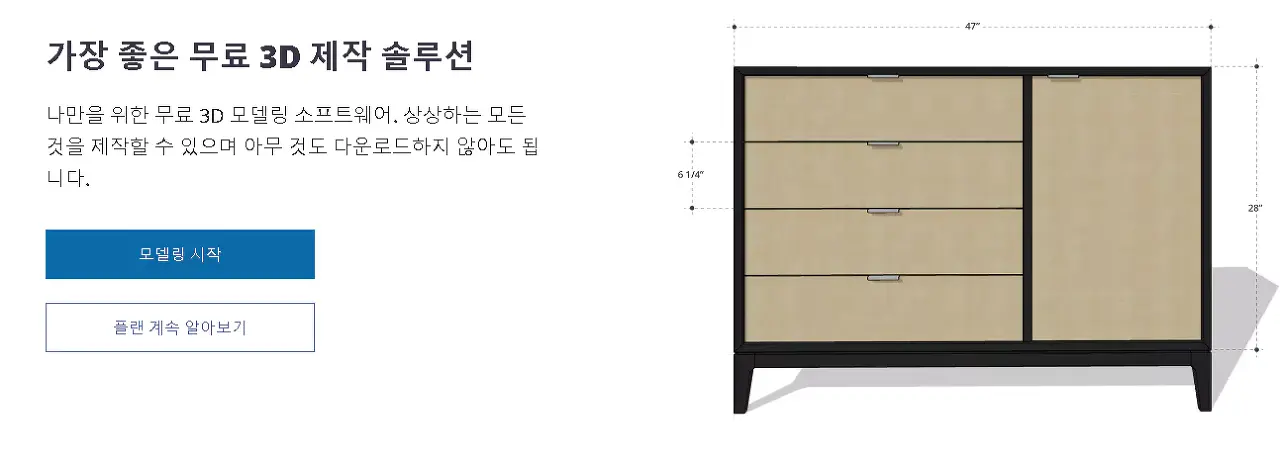스케치업 공식 홈페이지에서 제공하는 Sketch Free 버전의 경우 복잡한 설치 없이 로그인 후 무료로 사용할 수 있습니다.