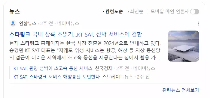 2024년도에는 스타링크가 국내에 출시된다는 소식도 들리기 시작했어요.