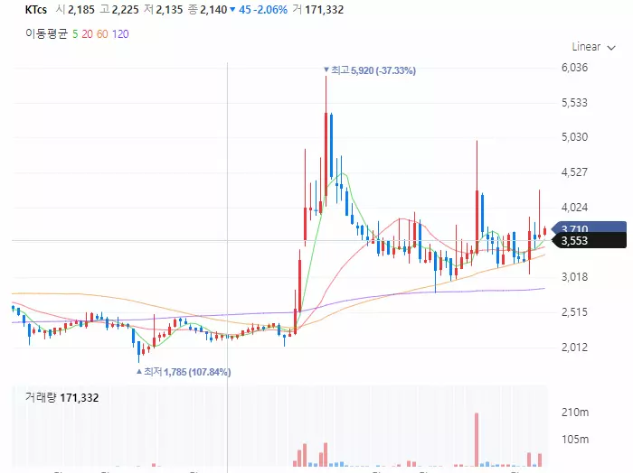 1. KTcs 주가 분석