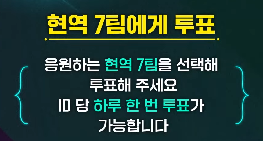 4. 응원하는 현역 7팀을 선택해주세요! ID 당 하루 한번 투표 가능!