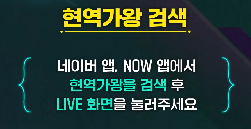 2. 네이버 나우앱에서 현역가왕 검색 후 라이브 화면을 눌러주세요!
