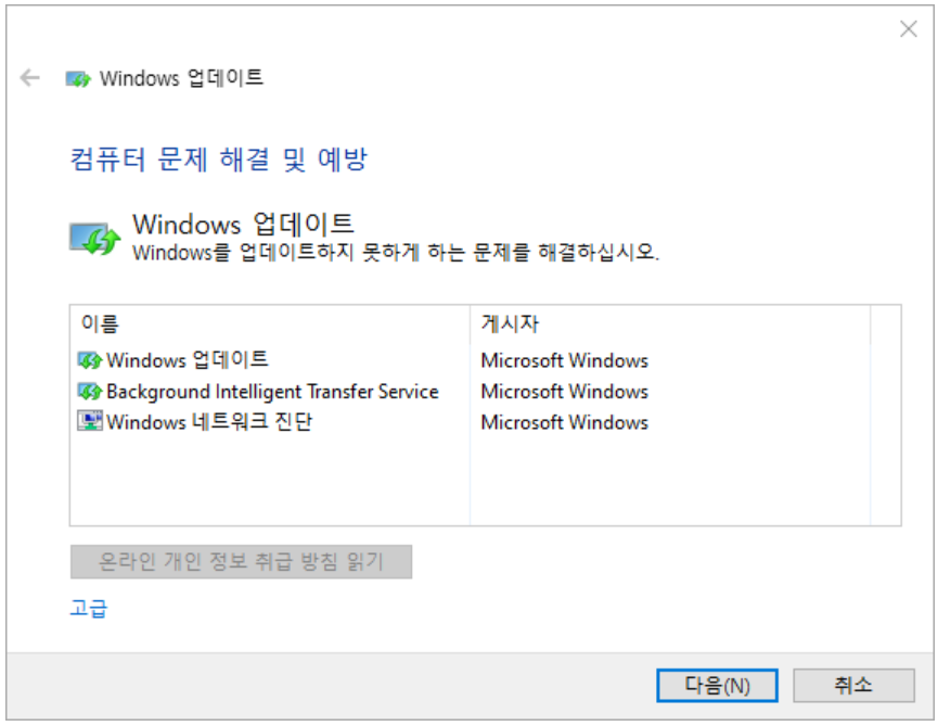 윈도우 기본 제공 문제 해결사를 먼저 실행하면, 간단한 오류는 자동으로 해결할 수 있습니다.