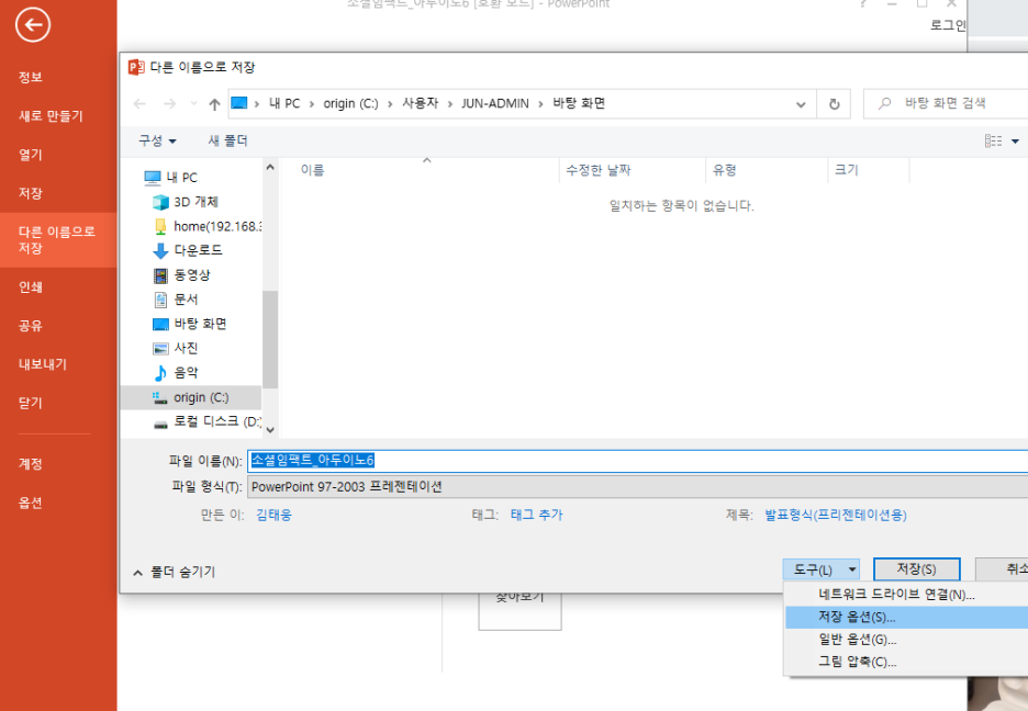 PPT 저장하는 단계에서